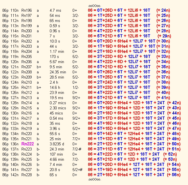 222 | 3.8235 days | Alpha Decay | 100.00% |
