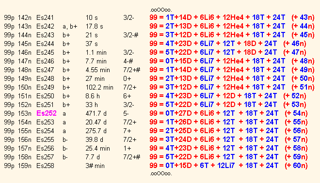 253 | 20.47 days | Spontaneous Fission | 8.7×10-6 % |